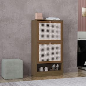 Sapateira Tropical 2 Portas Carvalho Transforme Seu Espaco com a Sapateira Tropical: Com sua combinacao de estilo e funcionalidade, esta sapateira e perfeita para quem busca organizacao e sofisticacao. Adquira ja e veja a diferenca em sua casa! Diferencial !!! Material: Estrutura em BP (Laminado decorativo de baixa pressao), oferecendo resistencia superior a riscos, umidade e manchas. Portas com pintura 3D que imita a palha indiana, proporcionando um toque elegante e diferenciado Ideal para quarto, closet ou lavanderia. Design vertical compacto para maximizar o espaco. 2 portas para armazenar sapatos de forma organizada. Montagem facil e rapida. Cores modernas e criativas para transformar seu ambiente Armazene seus sapatos de forma pratica e organizada Design exclusivo com pintura 3D que imita a palha indiana Durabilidade: Material resistente que garante longa durabilidade