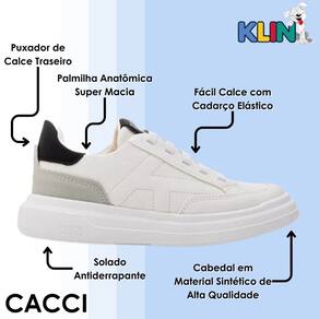 O Tênis Infantil Klin foi desenvolvido para oferecer praticidade, conforto e estilo no dia a dia das crianças. Conta com cabedal em material sintético de alta qualidade que garante durabilidade e acabamento moderno, além do solado antiderrapante que proporciona segurança em cada passo. A palmilha anatômica super macia oferece bem-estar prolongado, tornando o calçado ideal para acompanhar os pequenos em todas as atividades.