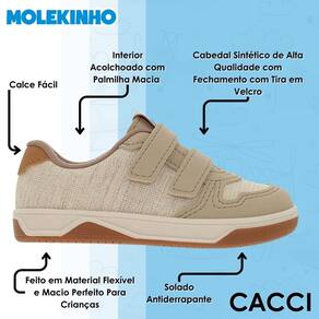 O solado emborrachado com frisos garante excelente aderência ao solo, evitando escorregões e trazendo mais estabilidade durante as brincadeiras e caminhadas. Funcional, estiloso e pensado para o conforto dos meninos, o Sapatênis Molekinho é aquele companheiro ideal para os dias cheios de energia.