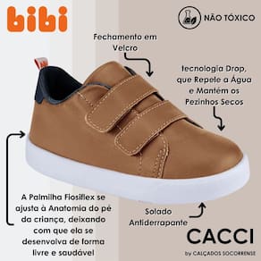 Cada material utilizado, para produzir o tênis infantil, foi testado para que nossos calçados sejam livres de materiais que causam danos à saúde da criança, garantindo a Proteção não-tóxica da Bibi.