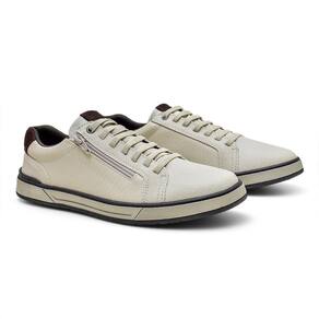 Sapatênis Masculino Casual Moderno Zíper Confortável Cadarço - 40 - Bege Claro