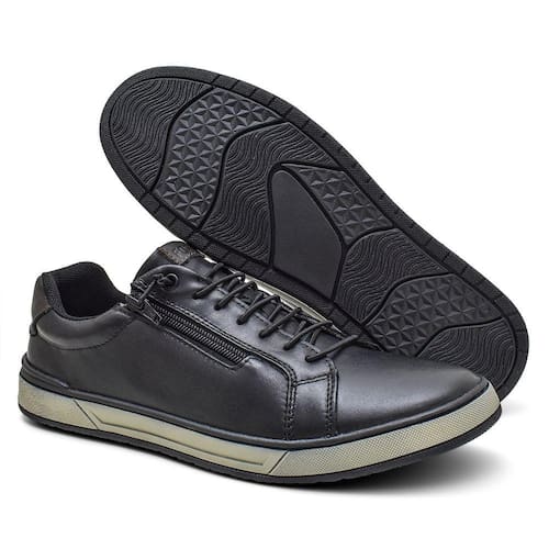 O Sapatenis Masculino é a escolha perfeita para quem busca unir conforto e estilo em um único calçado. Sua sola de borracha macia proporciona uma sensação de caminhar suave e agradável, enquanto o design moderno, com bico redondo, acrescenta um toque de sofisticação ao visual. O fecho de elástico estilo cadarço e o detalhe do zíper na lateral não só facilitam o calce como também conferem um charme extra ao sapatenis.