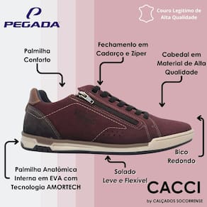O Sapatênis Masculino Pegada em couro da linha Dayli é perfeito para quem procura por estilo sem abrir mão do conforto. O forro em tecido espumado garante o conforto e a absorção de suor, características necessárias para manter o pé seco e arejado. O solado é antiderrapante e de alta flexibilidade, oferecendo a segurança e a versatilidade ideal ao calçado do dia a dia. Já a palmilha é macia e conta com a nossa Tecnologia AMORTECH, com um amortecedor na região do calcanhar, material que garante ainda menos impactos na pisada. E não para por ai, o modelo ainda possui zíper na lateral externa e um cadarço elástico com uma ponteira em metal que permite o ajuste sem a necessidade de amarrar, garantindo muita praticidade na hora de calçar.