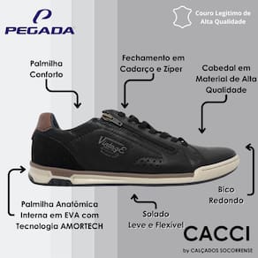 O Sapatênis Masculino Pegada em couro da linha Dayli é perfeito para quem procura por estilo sem abrir mão do conforto. O forro em tecido espumado garante o conforto e a absorção de suor, características necessárias para manter o pé seco e arejado. O solado é antiderrapante e de alta flexibilidade, oferecendo a segurança e a versatilidade ideal ao calçado do dia a dia. Já a palmilha é macia e conta com a nossa Tecnologia AMORTECH, com um amortecedor na região do calcanhar, material que garante ainda menos impactos na pisada. E não para por ai, o modelo ainda possui zíper na lateral externa e um cadarço elástico com uma ponteira em metal que permite o ajuste sem a necessidade de amarrar, garantindo muita praticidade na hora de calçar.
