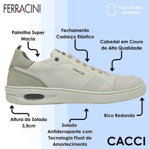 O sapatênis masculino Ferracini New Blady é a união perfeita entre inovação, estilo e conforto para o dia a dia. Seu design moderno traz cabedal em couro de alta qualidade, oferecendo durabilidade e um visual sofisticado para compor produções casuais ou mais arrumadas. O fechamento em cadarço elástico facilita o calce e garante ajuste ideal aos pés, tornando o uso ainda mais prático.