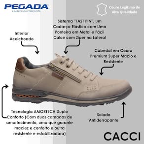 O sapato Pegada da linha Gold em couro bege é a escolha perfeita para quem não abre mão de conforto, estilo e praticidade. Seu design sofisticado e a delicadeza do couro tornam este modelo versátil para qualquer ocasião, enquanto sua construção cuidadosa garante uma experiência única de uso. Ideal para quem precisa de um calçado confortável para o dia a dia, sem perder a elegância.