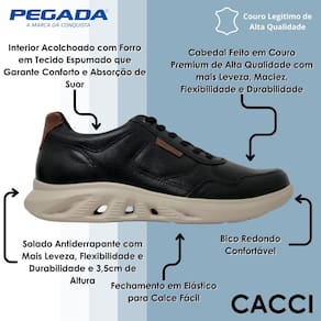 Combinando leveza, conforto e estilo, o Sapatenis Masculino de Couro Pegada é um aliado indispensável para a rotina. Experimente o calçado que une design inovador e tecnologias exclusivas, levando seus passos a um novo nível de conforto e sofisticação!
