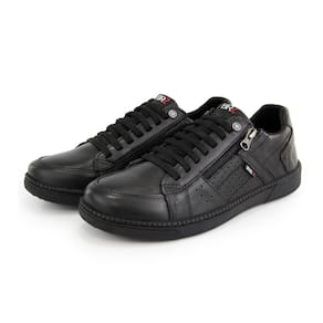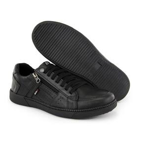 Sapatênis Masculino Ziper Footwear Cadarço Em Couro Preto - Preto - 41