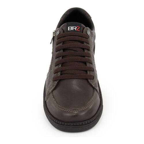 Sapatênis Masculino Ziper Footwear Cadarço Em Couro Preto - Marrom - 37