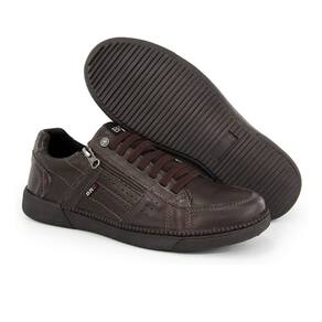 Sapatênis Masculino Ziper Footwear Cadarço Em Couro Preto - Marrom - 38
