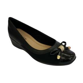 Sapatilha feminina Comfortflex com salto anabela de 3 cm, perfeita para quem busca conforto, estilo e versatilidade no dia a dia. Com design elegante na cor preta, bico arredondado e material sintético de alta qualidade, é ideal para looks casuais e ambientes de trabalho.Com solado em TR antiderrapante e recortes inferiores em tecido, ela oferece alta flexibilidade e maciez ao caminhar. O destaque do modelo fica por conta do enfeite em laço com detalhe dourado na parte da frente superior, conferindo charme e delicadeza à peça. O salto anabela oferece maior estabilidade e apoio aos pés, sem abrir mão da leveza e praticidade. Ótima escolha para mulheres modernas que valorizam bem-estar e sofisticação em um só calçado. Garanta já a sua.