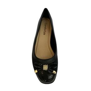Sapatilha feminina Comfortflex com salto anabela de 3 cm, perfeita para quem busca conforto, estilo e versatilidade no dia a dia. Com design elegante na cor preta, bico arredondado e material sintético de alta qualidade, é ideal para looks casuais e ambientes de trabalho.Com solado em TR antiderrapante e recortes inferiores em tecido, ela oferece alta flexibilidade e maciez ao caminhar. O destaque do modelo fica por conta do enfeite em laço com detalhe dourado na parte da frente superior, conferindo charme e delicadeza à peça. O salto anabela oferece maior estabilidade e apoio aos pés, sem abrir mão da leveza e praticidade. Ótima escolha para mulheres modernas que valorizam bem-estar e sofisticação em um só calçado. Garanta já a sua.