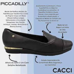 Despojado e moderno. A Sapatilha proporciona leveza e flexibilidade aos seus pés. Versátil, a tendência navy dá uma dose extra de sofisticação à sua produção. A peça conta com a tecnologia MAXI que garante um bem-estar prolongado. O calçado possui solado superaderente garantindo mais segurança ao caminhar. Já o acabamento confortável, o forro superfofinho e a espuma fofinha no calcanhar torna-o indispensável para quem precisa ficar horas de pé no trabalho. A sapatilha também é super flexível. Com materiais que aumentam a elasticidade, o calçado se molda ao formato dos pés prevenindo as dores do joanete. Além disso, deixam a área mais discreta. Com um macacão pantacourt e um cinto para marcar a cintura, o modelo deixa qualquer look fashion, além de adicionar um toque de elegância à produção. PICCADILLY, caminhe em direção ao novo e se surpreenda com o conforto! Você sabia que todos os produtos da PICCADILLY têm o Calce Perfeito? É um conjunto de benefícios exclusivos que respeita a anatomia do pé, diminui o cansaço e permite que você vá mais longe nas suas jornadas diárias.