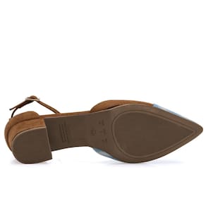 - Detalhamento: Confeccionada em tecido camurça combinado com jeans, a sapatilha apresenta um salto de aproximadamente 4 cm e bico fino, conferindo um toque de sofisticação e delicadeza. O fecho com ajuste proporciona um encaixe perfeito, garantindo conforto e segurança ao longo do dia;
