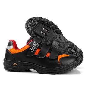 Produto desenvolvido com rigoroso padrão de qualidade e estudo de medidas, garantindo ótima anatomia e conforto em pedaladas longas para todos os formatos de pés. Cabedal em material tecnológico e malha com tramas abertas, proporcionando assim ótima estabilidade, resistência e ventilação interna. Sistema de fechos triplos (tiras autocolantes) possibilitando melhor ajuste independente do formato do pé do ciclista. Entressola reforçada para transferência de força, maximizando o rendimento nas pedaladas. Solado de borracha com ótima aderência em condições molhadas e escorregadias, garantindo sempre maior conforto e segurança ao caminhar.