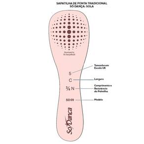 A Sapatilha De Ponta Só Dança Toshie Largura D Palmilha FN é super elegante pois não possuí plissado sob os dedos. Indicada para bailarinas do nível intermediário ao profissional. É fabricada com gáspea em formato de V, perfil baixo, palmilha inteira termo conformada (resina e fibra têxtil), forro em algodão, cabedal de cetim dublado e solado de couro. Sem plissado na região sob os dedos do pé.