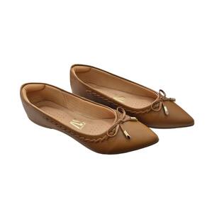 Sapatilha Feminina Casual Bico Fino Detalhe Laço Frontal Palmilha Macia Solado Borracha - 35 - Marrom
