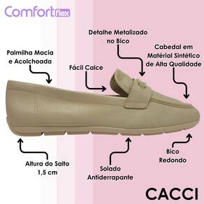 O solado antiderrapante, aliado à altura do salto de um centímetro e meio, oferece estabilidade e segurança ao caminhar, além de um leve toque de elevação que favorece a postura. A Sapatilha Comfortflex é a escolha certa para quem busca versatilidade, conforto absoluto e um visual delicado que nunca sai de moda.
