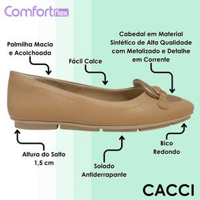 A sapatilha feminina Comfortflex é a escolha perfeita para quem busca aliar conforto extremo com um visual moderno e sofisticado. Seu cabedal é feito em material sintético de alta qualidade, com acabamento metalizado que dá um toque elegante e atual ao calçado, além de contar com um detalhe em corrente que valoriza o design. O bico redondo oferece encaixe natural aos dedos, promovendo um caminhar mais agradável e menos cansativo ao longo do dia.