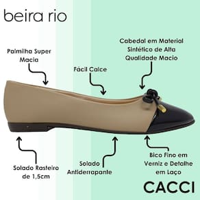 A Sapatilha Feminina Elegante Laço Beira Rio é a definição de charme e praticidade em um único modelo. Seu design delicado é perfeito para compor looks versáteis, desde o ambiente de trabalho até momentos casuais, sempre com um toque sofisticado. O cabedal macio proporciona ajuste confortável aos pés, enquanto o acabamento em verniz na parte frontal, junto ao laço delicado, confere um ar refinado e feminino.