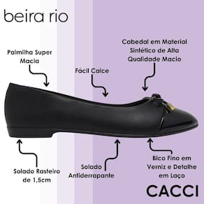 Sapatilha Feminina Elegante Laço Verniz Bico Fino Beira Rio - 38 - Preto