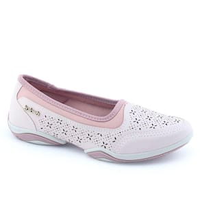 Delicado e com designer clássico e muito estilo. Seu cabedal é em sintético com padronagem cortadas a laser e o broche com o nome da marca em dourado. Seu interior é têxtil e sua palmilha é removível produzida em EVA e para calça-lo basta colocar nos pés.
