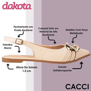 A Sapatilha Dakota Slingback é a união perfeita entre elegância e conforto, ideal para acompanhar a rotina da mulher moderna. Com um design refinado e bico fino, é confeccionada em material sintético de alta qualidade, proporcionando durabilidade e um acabamento impecável. O grande destaque do modelo é a peça metalizada orgânica aplicada na parte frontal, que adiciona sofisticação e um toque de originalidade ao visual. Leve, pesando apenas 0,527 kg, essa sapatilha é ideal para quem precisa de conforto ao longo do dia, seja no trabalho, em passeios ou em momentos de lazer. Com salto de 1,5 cm, proporciona bem-estar sem abrir mão do estilo. Seu design versátil transita facilmente entre o casual e o formal, permitindo combinações com diferentes tipos de looks e acrescentando charme e personalidade a cada produção, refletindo toda a autenticidade da mulher brasileira.