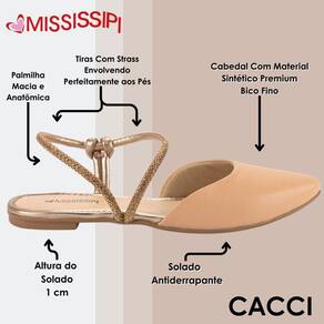 A Sapatilha Mississipi é uma opção deslumbrante para adicionar um toque de glamour aos seus looks. Com um design monocolor e bico fino, essa sapatilha combina elegância e estilo de forma única. Possui uma tira fina que envolve o tornozelo repleta de strass, adicionando um brilho sofisticado e um toque de luxo ao calçado.