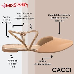 Sapatilha Feminina Tira Strass Conforto Casual Mississipi - 35 - Bege