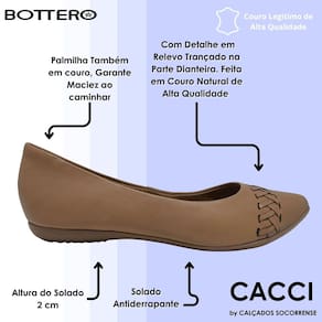 Com acabamento impecável e altura discreta no solado, esse modelo é perfeito para quem valoriza estilo e bem-estar. Leve, versátil e elegante, a sapatilha Bottero é aquela companheira que une praticidade e charme em qualquer ocasião.