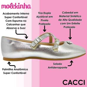 Sapatilha Infantil Menina Confortável Brilhante Molekinha - 32 - Prata