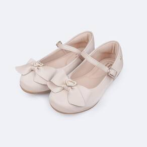 Sapatilha infantil feminina em sintético areia, super fofinho! Sapatilha com forro que auxilia na absorção do suor e espuma no calcanhar. A sapatilha Pampili possui palmilha C'alma, uma tecnologia desenvolvida com base na reflexologia podal, que tem benefi´cios para o corpo e mente, reenergizando os mesmos. Solado emborrachado leve, flexível e antiderrapante que dá segurança para as meninas! Aplique lateral Pampili em metal prata. Sapatilha feminina com tira que cruza no peito do pé e fechamento com fivela easy, sem pino, dando autonomia para a menina e praticidade no calce para a mamãe.