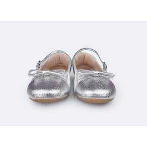 Inspirado na sapatilha de ballet, o sapato feminino vem com o bico levemente quadrado, super sofisticado! Sapato infantil em material tecnológico texturizado quadriculado prata, com biqueira em sintético e lacinho, inovadora e moderna! Sapatilha infantil forrada com tecido que auxilia na absorção do suor, espuma no calcanhar e palmilha anatômica. Sapatilha feminina com solado emborrachado mais fino com um leve salto, sendo leve, flexível e antiderrapante. Sapatilha infantil com fechamento em fivela sem pino antioxidante, que facilita o calce para a mamãe e da ainda mais charme ao look! Sapatilha com marcação em braile no solado para indicar os lados direito e esquerdo.