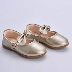Encante os passos da sua pequena. Em um delicado tom de dourado e adornada com um gracioso laço e detalhes em strass essa sapatilha é também um acessório que adiciona charme e elegância a qualquer ocasião e look. Esse modelo além de lindo, cuida do conforto e segurança dos pezinhos. Equipada com um prático fechamento em fivela dourada, garante segurança e facilidade ao calçar. Sua construção anatômica oferece o suporte ideal para os pés em desenvolvimento, enquanto a sola antiderrapante proporciona estabilidade e confiança em cada passo. Conta também com a palmilha anatômica medidora, que facilita a verificação do desenvolvimento do pé e saber quando é a hora de trocar o calçado. Seja para uma festa especial, um passeio no parque ou simplesmente para dar um toque de estilo ao dia a dia, esta sapatilha é a escolha ideal para uma experiência de conforto, estilo e segurança que sua pequena merece.