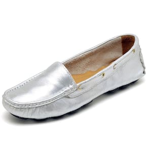 Sapatilha Mocassim Drive em Couro Feminino Solado Borracha Calce Facil Elegante Festa Trabalho - 33 - Prata