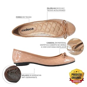 Além de serem estilosas, as sapatilhas femininas da Moleca são extremamente confortáveis! Este modelo é confeccionado em material sintético leve e resistente de alta qualidade. O cabedal possui aplicação de um pequeno laço em cima, dando um charme a mais para o calçado. Somado a isso, a palmilha em Matelasse é super macia e o solado é flexível, emborrachado e com frisos antiderrapantes, garantindo segurança e estabilidade ao caminhar.