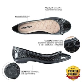 Sapatilha Moleca Losango Bico Redondo Laço Verniz Preto Feminina Conforto 329155