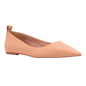 Sapatilha confeccionada em material nobre soft e acabamento liso, modelo de bico fino e salto flat, adicionando um toque sofisticado e elegante ao modelo.