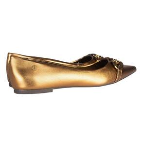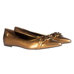 A Sapatilha Splendore é uma peça sofisticada e elegante, que combina o brilho sutil do acabamento metalizado com um design moderno. O bico fino confere um toque de delicadeza, enquanto os detalhes em metal na parte frontal adicionam um charme extra e um toque de luxo ao modelo. O acabamento metalizado garante que a sapatilha se destaque em qualquer look, sendo perfeita para ocasiões formais ou eventos especiais.