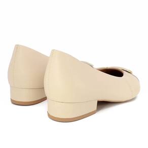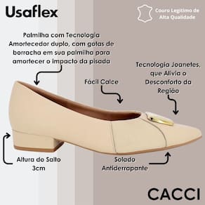 Scarpin bico fino com cabedal em couro napa valise na cor vanilla. O modelo possui tecnologia Amortecedor duplo, com gotas de borracha em sua palmilha para amortecer o impacto da pisada, tanto no calcanhar como na região frontal do calçado.