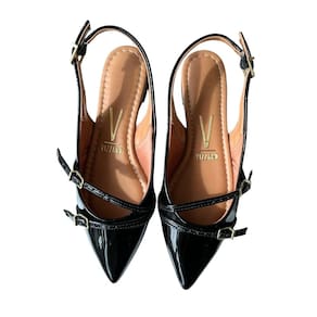 com desing moderno e elegante a Sapatilha Slingback Aberta Feminina Fivela Verniz VIzzano é ideal para o dia a dia trabalho ou eventos sociais
