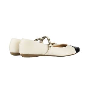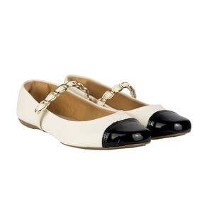 VIA UNO Sobre a marca: A Via Uno acompanha as principais tendências e lançamentos da moda mundial com o lifestyle urbano e moderno, oferecendo calçados versáteis, diversos estilos e muito conforto para a mulher contemporânea. Sapatilha moderna e confortável. Com tira no peito do pé, estilo sapato boneca, com detalhes simulando uma corrente.