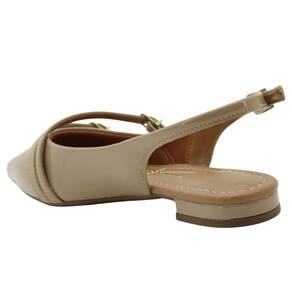 O modelo conta com três tiras finas, sendo duas na parte superior e uma na parte traseira, com fivelas ajustáveis que proporcionam calce fácil e ajuste perfeito. O solado em borracha com frisos antiderrapantes oferece segurança e estabilidade, enquanto o salto baixo de aproximadamente 2 cm assegura leveza e bem-estar ao caminhar. Uma opção versátil e charmosa, perfeita para o dia a dia ou ocasiões que pedem um toque de elegância discreta.