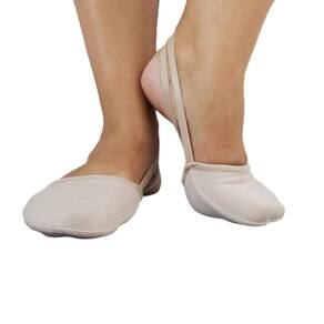 Sapatilha de ginástica rítmica confeccionada em tecido, na cor creme.