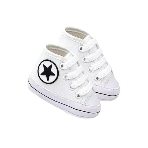 Tênis de cano alto para bebê marca AMB calçados. Apresenta aplicação de estrelinha na lateral do calçado e conta ainda com o estilo clássico que amamos. Possui ajuste por cadarço branco e linha no solado confeccionado em material macio e leve. É perfeito para passeios, festas e até mesmo para o dia a dia do seu fofuxo garantindo conforto e estilo. Disponível nos tamanhos 13, 14, 15, 16, 17 e 18
