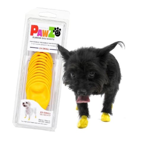 Sapatinho para Pet Cachorro Pawz Bota Amarela Tam PPP - 4un Porque aconselhamos:- Perfeito para passeios, mantendo as patas dos pets livres de sujeiras, lama, urina e outros detritos;- Evita que agentes químicos provenientes de gramados e outros tipos de solo, possam prejudicar ou machucar as patas;- Protege os ferimentos nas patas, evitando que o cão lamba e melhorando a cicatrização;- Feito de seiva de seringueira, um material sustentável, totalmente natural e biodegradável;- Tem eficácia comprovada na proteção contra o asfalto quente e gelado como a neve;- Melhora a tração em pisos lisos e escorregadios;- É reutilizável, impermeável e fácil de limpar;- É muito confortável, sendo fácil de colocar e retirar; Principais características- As botas de borracha para cães da PawZ oferecem proteção excepcional contra tudo, desde superfícies quentes como o asfalto da rua e até neve e gelo.- Estas botas duráveis e flexíveis permitem que as patas do seu cão sintam o chão, proporcionando uma sensação de segurança durante qualquer situação.- Se estiver com muitos danos deve ser substituído.- Contém 4 botas no pacote.- Este tamanho é adequado para cães de porte pequeno com patas de até 6,3 cm.- Composição: Borracha natural de seringueira.