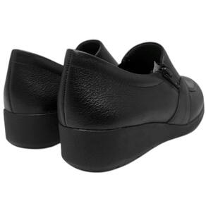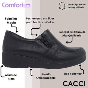 Confeccionado em couro de alta qualidade, o mocassim conta com um acabamento refinado e durável, que proporciona um toque macio e uma aparência elegante. Seu design clássico com bico arredondado traz um visual atemporal, enquanto o salto anabela de 3 cm oferece a elevação ideal para garantir estabilidade, leveza e conforto durante todo o dia.
