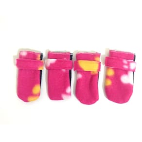 Sapato confeccionado em tecido soft vermelho; Revestido de solado emborrachado antiderrapante, ideal para cães que escorregam no piso liso; tiras aderentes para fechar com regulagem para melhor vestir em seu pet. Protege as patas em dias mais frios; Conjunto com 4 sapatinhos; Cor: rosa; Tamanho: P Medidas aproximadas: Largura: 6 cm, Altura: 11 cm. Ideal para cães e gatos. Marca: Nica pet Ean: 7437108346601