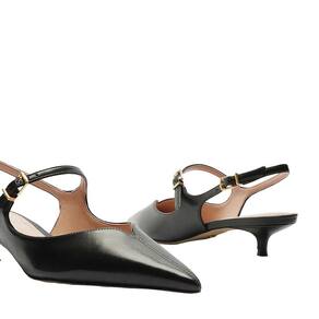 O scarpin de ponta fina surge com design boneca e salto kitten, expressando as tendências da temporada. Perfeito para inserir elegância e modernidade nas suas produções!