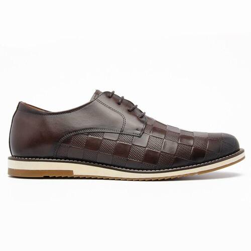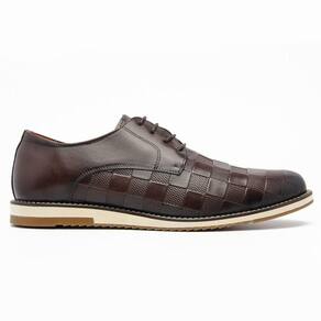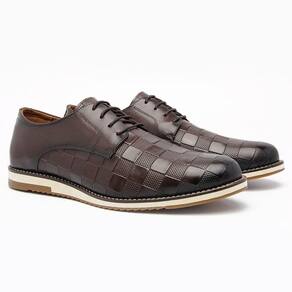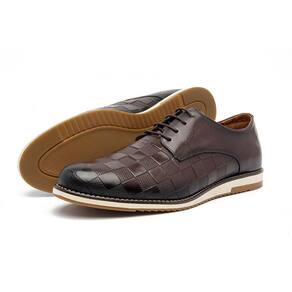 Sapato Casual Oxford Masculino Em Couro Quadriculado Pinhão